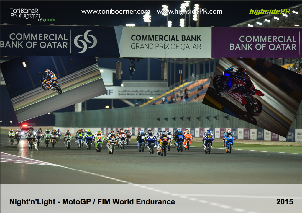 Der Night’n’Light Kalender 2015 ist aus der Affinität zur Nacht und dem Racing rund um die Uhr entstanden. Hier sind einige der besten Bilder von highsidePR und Toni Börner aus der „Nacht-Saison“ 2014 enthalten. Neben dem Auftakt der MotoGP Weltmeisterschaft in Katar finden natürlich die Langstrecken-Klassiker der 24 Stunden von Le Mans sowie beim Bol d’Or Einzug in diesen Kalender. Hier ging es nicht unbedingt um „Sieger“, sondern um „siegverdächtige“ Fotos.