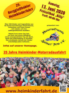 Heute wurde von den Verantwortlichen des Motorradfreunde „Beinhart“ Pirna e.V. der Tag für die 25. Ausfahrt mit Heimkindern bekanntgegeben – es ist der 13.Juni 2020.