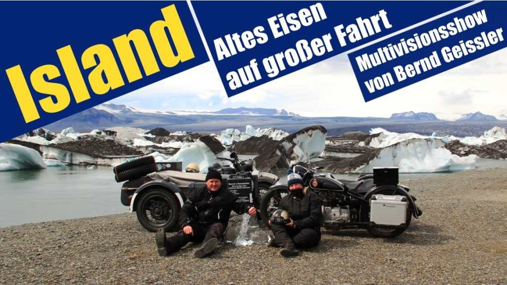 Stefanie u. Bernd Geißler waren 2011 auf ihren betagten Motorädern (AWO T425 Bj.54 und einer BMW R75 Bj.42) 4 Monate unterwegs. Dabei erkundeten sie Island, Schottland und die Isle of Man.