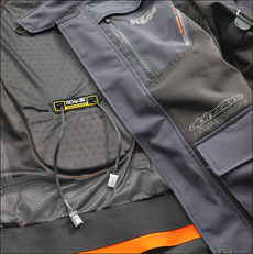 KTM-Jacke mit Tech-Air-Airbag von Alpinestars: Verkabelung (l.) und Kontrollleuchten.