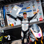 Lennox Lehmann aus Dresden stand in seiner ersten Saison in der IDM Supersport 600 ganz oben – Platz 1 im ersten Rennen! |