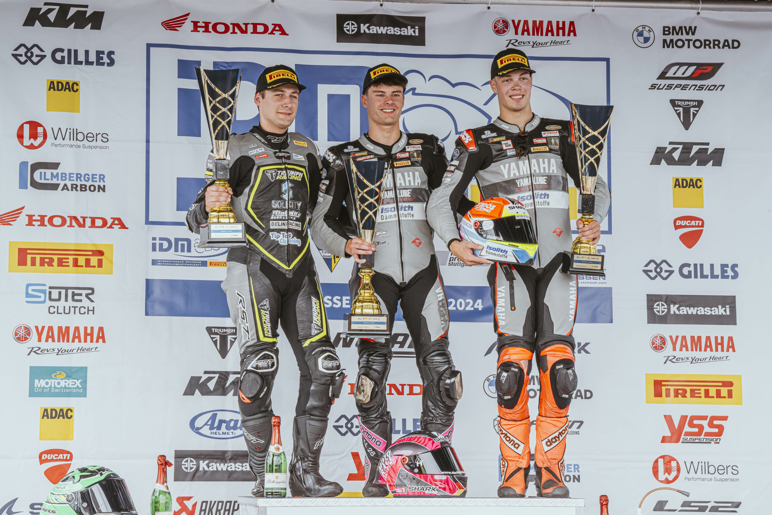 Lennox Lehmann aus Dresden stand in seiner ersten Saison in der IDM Supersport 600 ganz oben – Platz 1 im ersten Rennen! |
