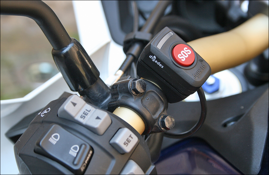 Unter dem Namen D-Guard ist ein E-Call-System für Motorräder zum Nachrüsten erhältlich. Im Falle eines Sturzes soll das System automatisch Rettungskräfte alarmieren und den Unfallort übermitteln. |