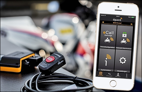 Unter dem Namen D-Guard ist ein E-Call-System für Motorräder zum Nachrüsten erhältlich. Im Falle eines Sturzes soll das System automatisch Rettungskräfte alarmieren und den Unfallort übermitteln. |