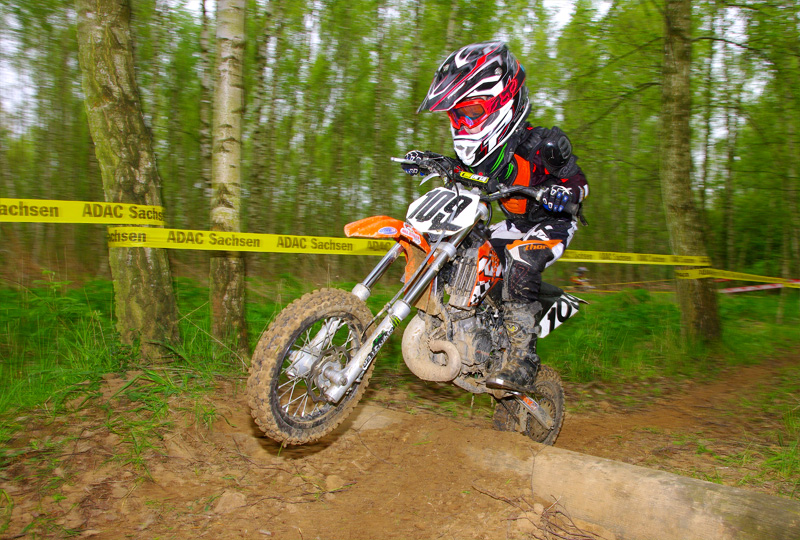 Am Vormittag ertönte zunächst der Startschuss für die Kinder der Schülerklassen 50 ccm und 65 ccm. Während die Jüngsten sechs Runden zu absolvieren hatten, mussten die Größeren noch einen Umlauf mehr auf der rund 10 Minuten langen Schleife bewältigen. Als Sieger gingen Fritz Vogt vom SHC Meltewitz e.V. im ADAC (Klasse 50 ccm) und Clemens Voigt vom Verein Endurofreunde Petersberg e.V. (Klasse 65 ccm) hervor.