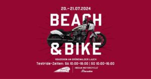 Indian Motorcycle Dresden, Themencamping Grünewalder Lauch in Lauchhammer und Motogiro Dresden (Vertragshändler und -werkstatt für Indian Motorcycle und Fahrzeuge der Piaggio Group) sind wieder mit dabei beim Beach & Bike 2024!