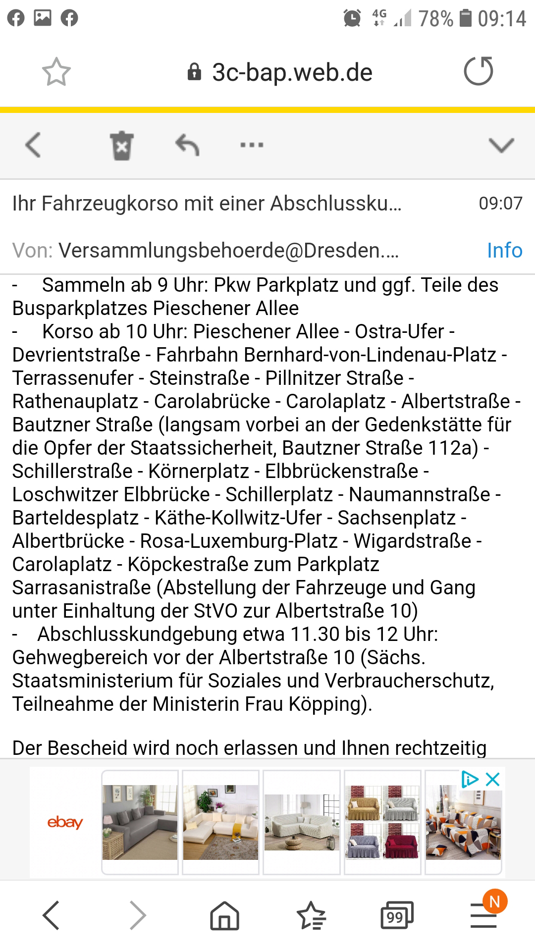 Die Strecke hat sich etwas geändert, Treffpunkt zum Konvoi in Dresden ist jetzt Parkplatz Pieschener Allee 1A, 01067 Dresden ,öffentlicher Parkplatz.