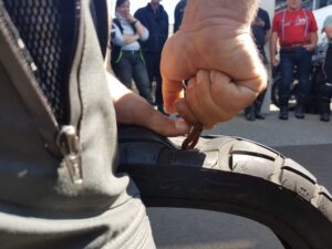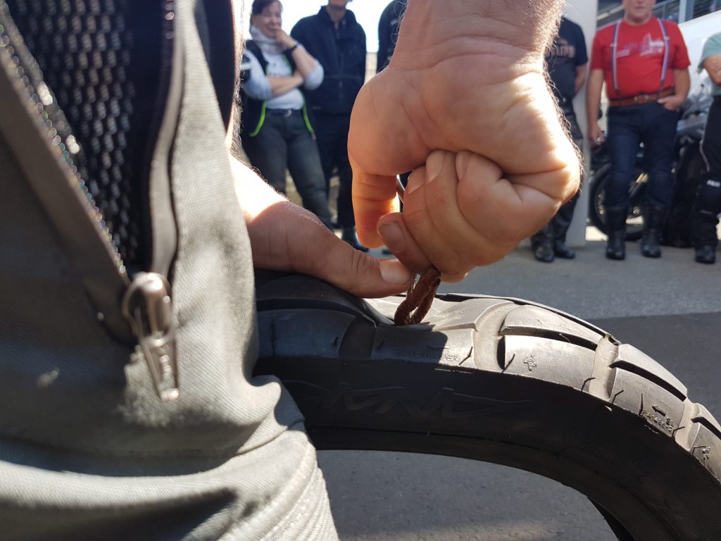 Zu Beginn von diesem Workshop werden die verschiedenen Möglichkeiten einer Reifenreparatur erklärt. Nicht jedes „Flickzeug“ hält, was es verspricht und Ihr werdet überrascht sein, wieviel Kraft für so eine Reparatur benötigt wird.