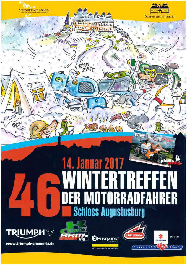 (csp.) Alle Jahre wieder geht etwas schief. Aber es lässt sich nicht ändern. Dann finden die Sachsenkrad, die Dresdner Motorradmesse, und das Motorradfahrer-Wintertreffen auf der Augustusburg parallel zueinander statt. |